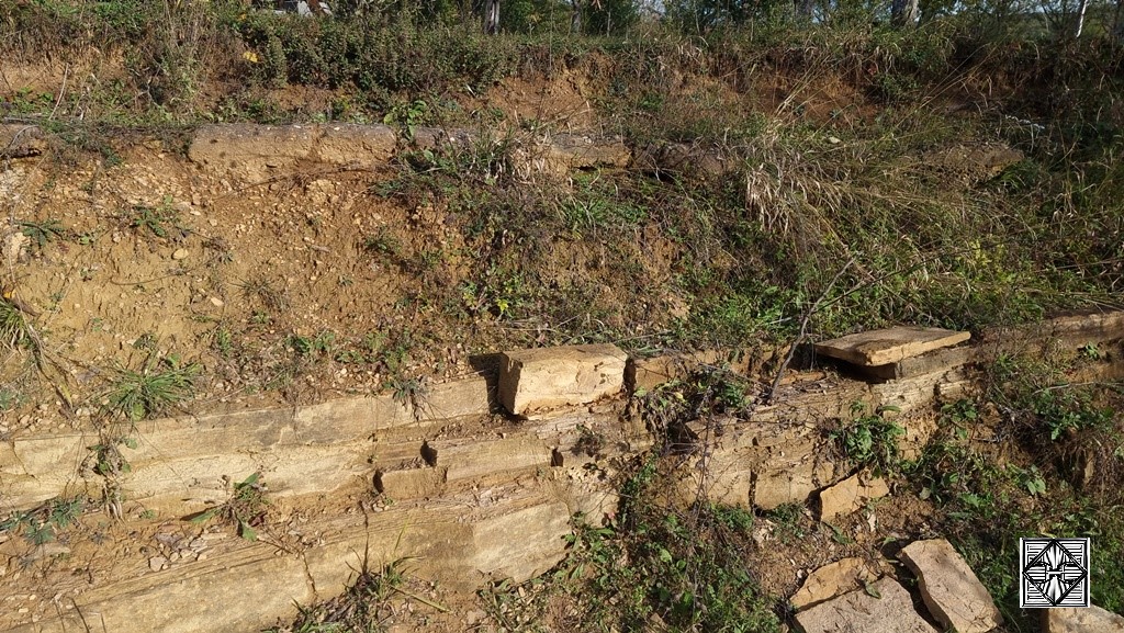 Ein paar Meter weiter wurde im Boden ein Feld von ca. 10×6 Meter Fläche freigelegt (Tiefe rd. 1-1,5 Meter). Hier ist ganz klar eine Mosaik – Gestaltung zu erkennen: absichtlich verschieden große geordnete Boden-Steine bis Steinchen – an wenigen Stellen erkennt man sogar noch das gelegte Muster (bogenförmige Steinreihen)!! Alles natürlich – dass ich nicht lache 😉