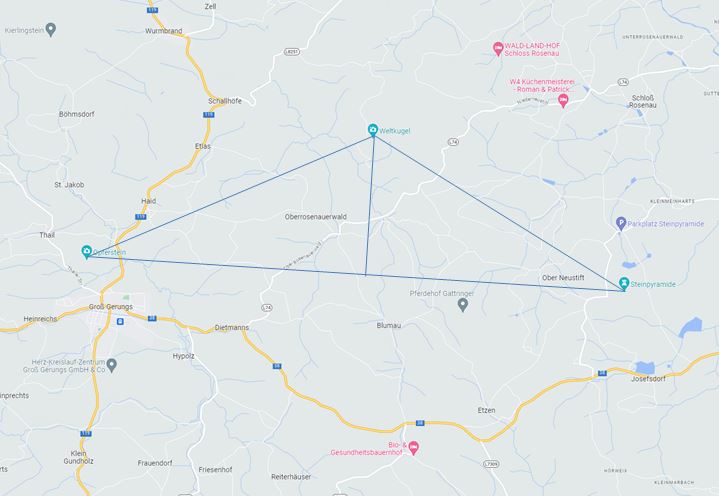 Es hat mich bereits stutzig werden lassen, als ich das erste Dreieck fand – da es nicht einfach irgendwelche beliebigen Orte sind, sondern uralte Steinformationen, die so interessant sind, dass sogar das Ludwig Boltzmann Institut dort Messungen vornahm.