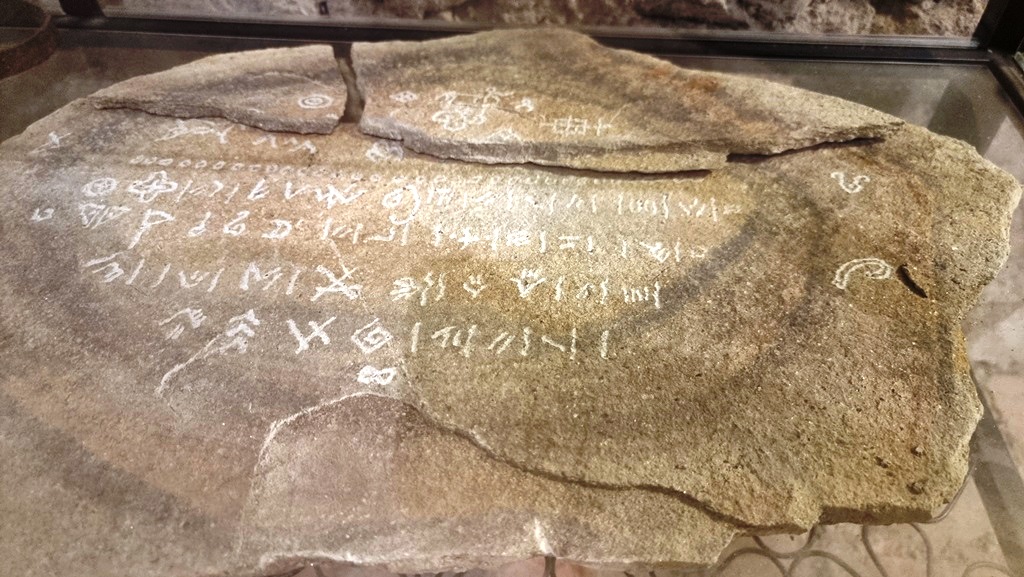 Steinplatte mit offensichtlicher Schrift – offiziell hat die Donau- oder Vinca-Kultur keine Schrift gehabt.