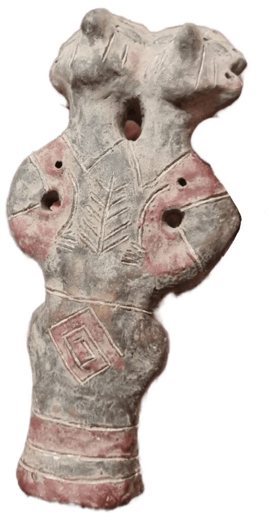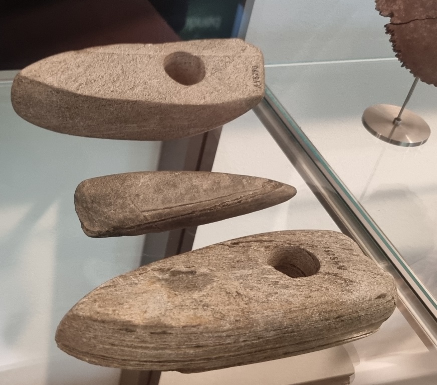 Diverse sogenannte „Lochbeile“: bei Versuchen konnte jedoch festgestellt werden, dass diese meistens mandel-förmigen Steine mit Loch kein Teil einer Axt oder eines Werkzeuges sein können. Holzstäbe oder Hornstücke, die durch diese Löcher passen würden, wären viel zu dünn, um auch nur einem Hieb standzuhalten. Außerdem sind die Innenseiten der Löcher auf Hochglanz poliert, das ergibt keinen Sinn im Zusammenhang mit einem Werkzeug. Viele solcher Steine mit Loch sind unter den freigelegten Gängen in den Fundgruben neben Keramikfiguren und –gefäßen geborgen worden – und das in speziell ausgerichteten Anordnungen.