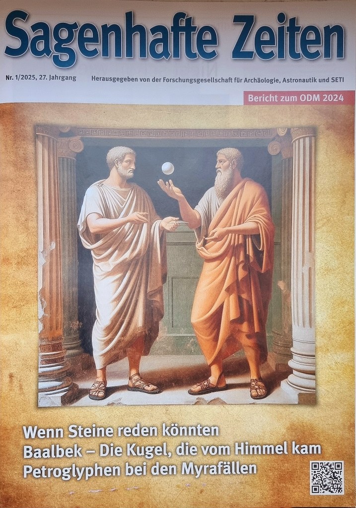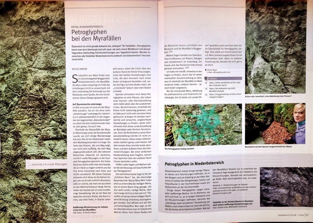 Im Frühjahr 2025 erschien mein Artikel „Petroglyphen bei den Myrafällen“ im Fach-Magazin „Sagenhafte Zeiten“ – das Magazin der A.A.S., Forschungsgesellschaft für Archäologie, Astronautik und SETI (https://www.sagenhaftezeiten.com / Facebook / Instagram / WhatsApp) – zugrundeliegende Theorie der Präastronautik von und mit Mitbegründer Erich von Däniken.